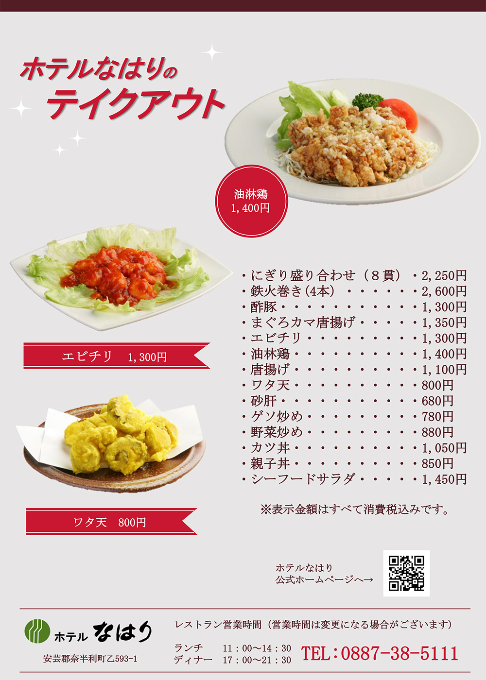 朝 7:00 〜 9:00 (ご宿泊者のみ) 昼 11:00 〜 14:30 (ラストオーダー 14:00) 夕 17:00 〜 21:30 (ラストオーダー 21:00)
